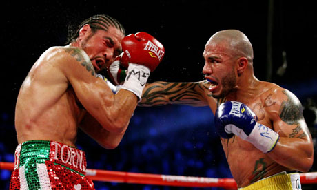 In the third round, Cotto cut the right eye of Margarito, and for the rest of the fight it was an issue for the Mexican. Cotto targeted it and found success, firing off flush left hooks. By the Cotto-dominated ninth round, the eye was just about fully shut. When Maragrito went to answer the bell for the 10th round, the doctors had made their decision. Margarito and his camp were visibly upset, pleading that the fighter could continue. It wasn't to be.